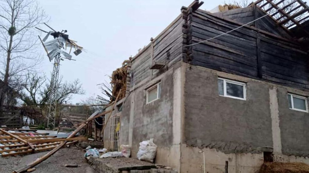 Şiddetli rüzgar nedeniyle bazı evlerin çatıları uçtu. Uçan çatı parçalarının elektrik direklerine çarpması sonucu teller koptu.