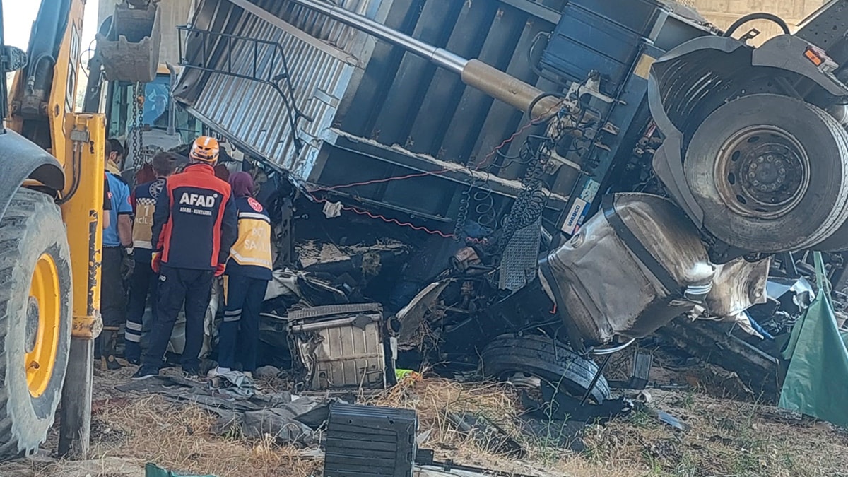 Olay yerine gelen itfaiye ekipleri, yaklaşık 3 metre yükseklikten düşen tırda sıkışan Mustafa (48) ile Aykut Akgül'ü (29) bulundukları yerden çıkararak sağlık ekiplerine teslim etti.