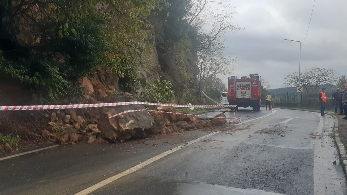 Kaya parçalarının bir kısmının kaldırılmasının ardından trafik akışı kontrollü olarak sağlandı.