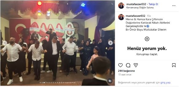 Özer, halay çektiği görüntüleri kendi sosyal medya hesabından paylaşarak, “Merve & Hamza Kara çiftimizin düğünlerine katılarak nikah akitlerini gerçekleştirdik. Bir ömür boyu mutluluklar dilerim” notunu düştü.