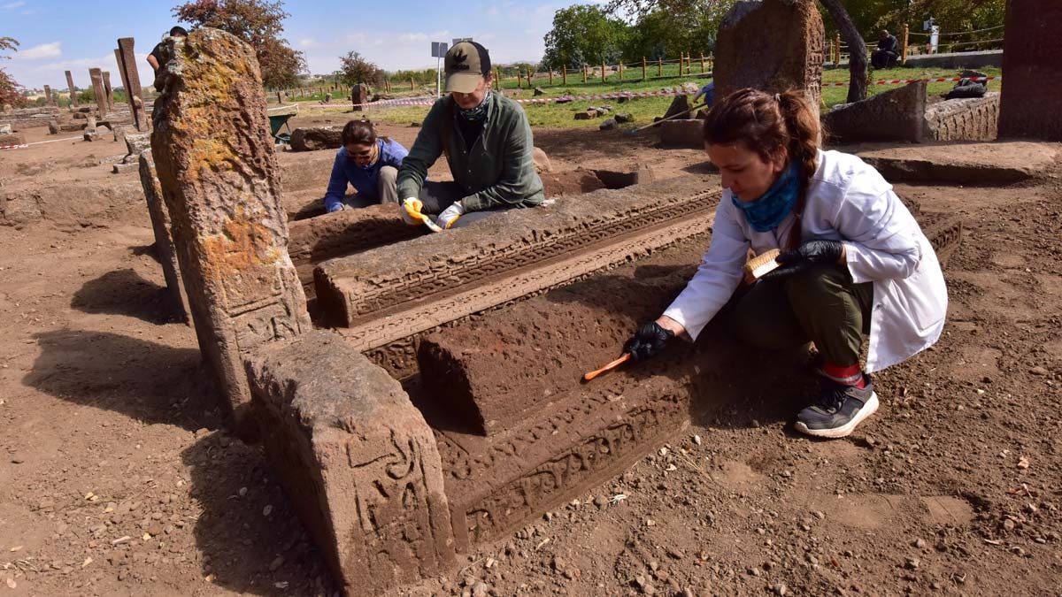 Van Yüzüncü Yıl Üniversitesi Sanat Tarihi Bölümü Dr. Öğr. Üyesi Mehmet Kulaz'ın bilimsel danışmanlığında yürütülen çalışmalarda hem yeni mezarlar ortaya çıkarılıyor hem de kırılan, tahrip olan mezar taşları restore ediliyor.