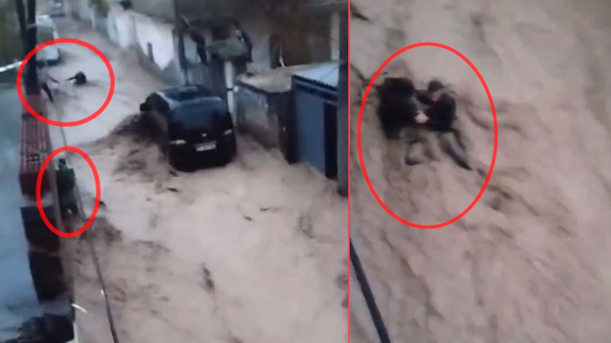 Nur Mahallesi’nde sele kapılan 2 kişi, cep telefonuyla kayda alındı. Görüntüde direğe tutunan kişi, suda sürüklenen 2 kişi kurtarmaya çalışıyor, ancak başarılı olamıyor. Bir süre sonra bu kişilerden biri kendi imkanlarıyla kurtuluyor. Kurtulan kişi, selde sürüklenen diğer kişiyi de kurtarmak isterken tekrar suya kapılıyor. Bu 2 kişinin bir süre sonra kendi imkanlarıyla kurtulduğu bildirildi. İlçede yaşanan sel felaketiyle ilgili hasar tespit çalışmaları ise devam ediyor.