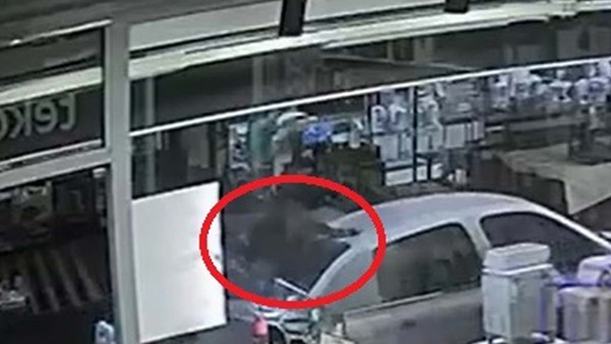 Keçinin ev sahipleri tarafından adaklık olarak beslendiği belirtildi. Keçinin düşme anı bir iş yerinin güvenlik kamerasına yansıdı. (DHA)
