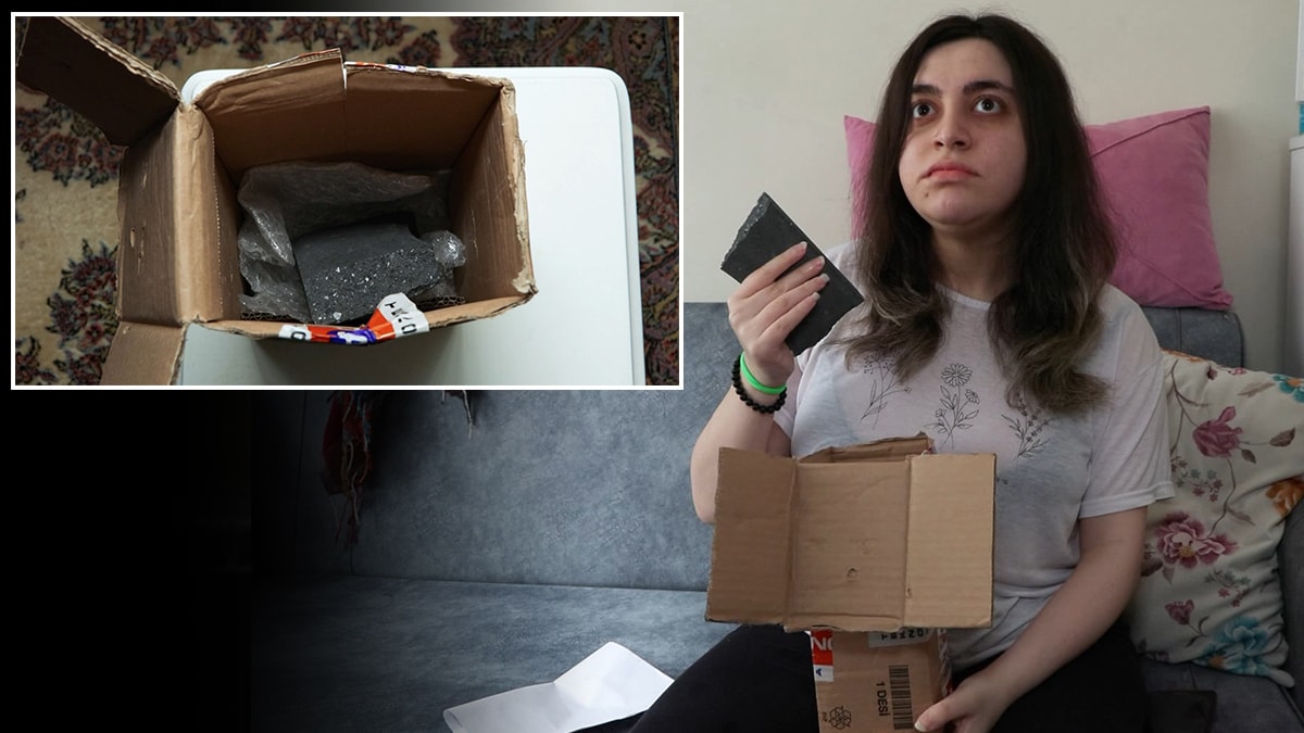 Bedensel engelli Sibel Zengin, “2 Şubat Cuma günü bir teknolojik mağazadan tablet satın alımı gerçekleştirdik. Cuma günü aldığımız için araya hafta sonu girdi. 5 Şubat'ta biz kargomuzu almak üzere; ben engelli olduğum için evden bizzat aile büyüğümden birini gönderdim. Onlar da gidip alıp getirdi. 'Hayırlı olsun' diyerek açmak istedi dayım. Açınca içinde kare şeklinde bir taş gördük. Kutusu da büyük bir şekildeydi. Hani biz bunun üzerine her yere bildirdik. Mağaza ve kargo şubesini aradık. Mağaza kendisi kabul etmedi bunu. Aldığım mağaza, 'Diğer satıcı mağazaya söyleyin' dediler. Biz de satıcı mağazayı aradık. Bayağı bir onlar ilgilendiler, baktılar, incelediler. Bir süre haber gelmedi zaten. Dediler, 'Kargoluktur sorun.' Biz kargonun genel müdürlüğünü aradık. Genel müdürü de bütün kayıtları, transfer sürecini, hepsini incelediğini beyan etti. 'Bu bizlik değil, satıcının suçu' dediler. Biz de satıcıya tekrar döndük. Aradık, satıcı da ‘Biz düzgün bir şekilde kargoladık’ dedi. 20 bin lira söz konusu ortada, iki tarafta suçu birbirine atıyor. 20 bin liralık bir tablet satın aldık. Satıcıyı aradığımızda, 'Aldığınız internet sitesi üzerinden satıcıya iade edin, iade olursa ürününüz, paranızı alırsınız' dediler. Biz iade ettik. İadeyi reddettiler, içinde taş olduğu için kabul etmediler. Tutanak gönderdiler iade olmadığına dair. Gelen taş da şu şekilde. Ben şikayetçiyim, böyle durumda şikayet edilmesi gerekiyor. Tüketici hakem heyetine de başvuru yaptık. Mağdur oldum, bu resmen insanları dolandırmak. Avukatımızla hukuki süreci başlatacağız. Yani taşı görünce şok oldum, 20 bin lira verdim. Birazcık zoruma gitti, üzüldüm. Ben para biriktirerek aldım o ürünü. Böyle bir taş geldi bize, şok olduk. Tablet beklerken taş geldi. Yani aldığımız tablet yok" diye konuştu.