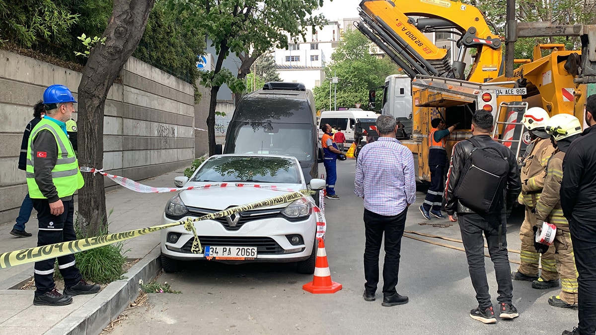 Şişli Yeşilçimen Sokağı'nda yolda çökme meydana geldi.