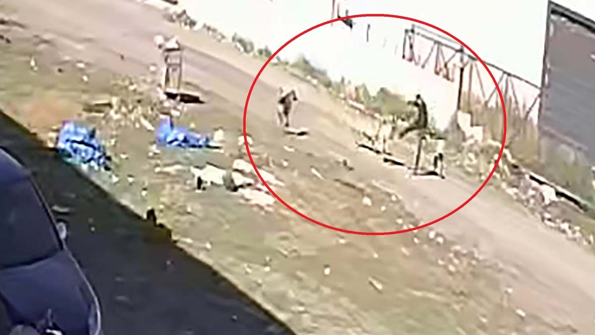 Bu arada çevreden yetişen bir vatandaş da köpekleri uzaklaştırmasına yardımcı oldu. Doğru'nun sokak köpekleri ile mücadelesi güvenlik kamerasına yansıdı.