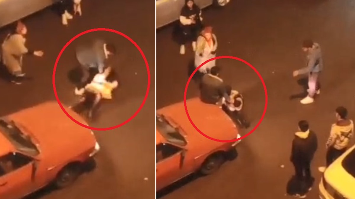 Görüntülerde; elinde bıçak olduğu görülen kişinin, kadını saçından tutarak sürükleyip, tekme- tokat atması, sokak üzerindeki apartmandan olayı izleyen bazı vatandaşların konserve atarak şüpheliyi engellemeye çalışması, vatandaşlar tarafından ikna edilen şüphelinin bir süre sonra ise kırmızı bir otomobile binerek olay yerinden kaçtığı anlar yer aldı.