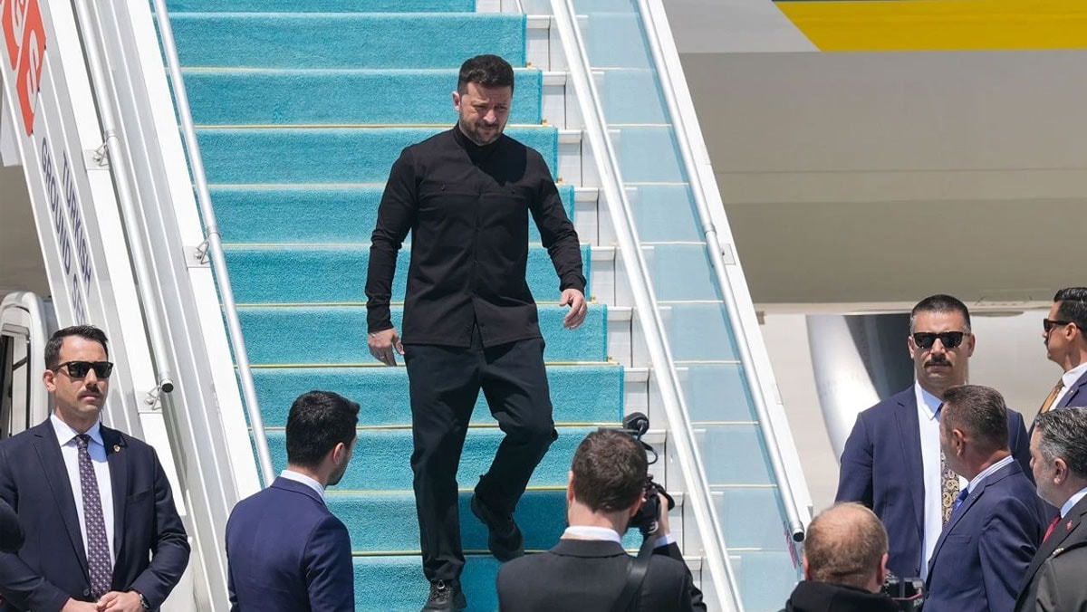 AA-Ukrayna Devlet Başkanı Volodimir Zelenski ve beraberindeki heyet, temaslarda bulunmak üzere Ankara’ya geldi. Zelenski’yi taşıyan uçak, az önce Esenboğa Havalimanı’na iniş yaptı.