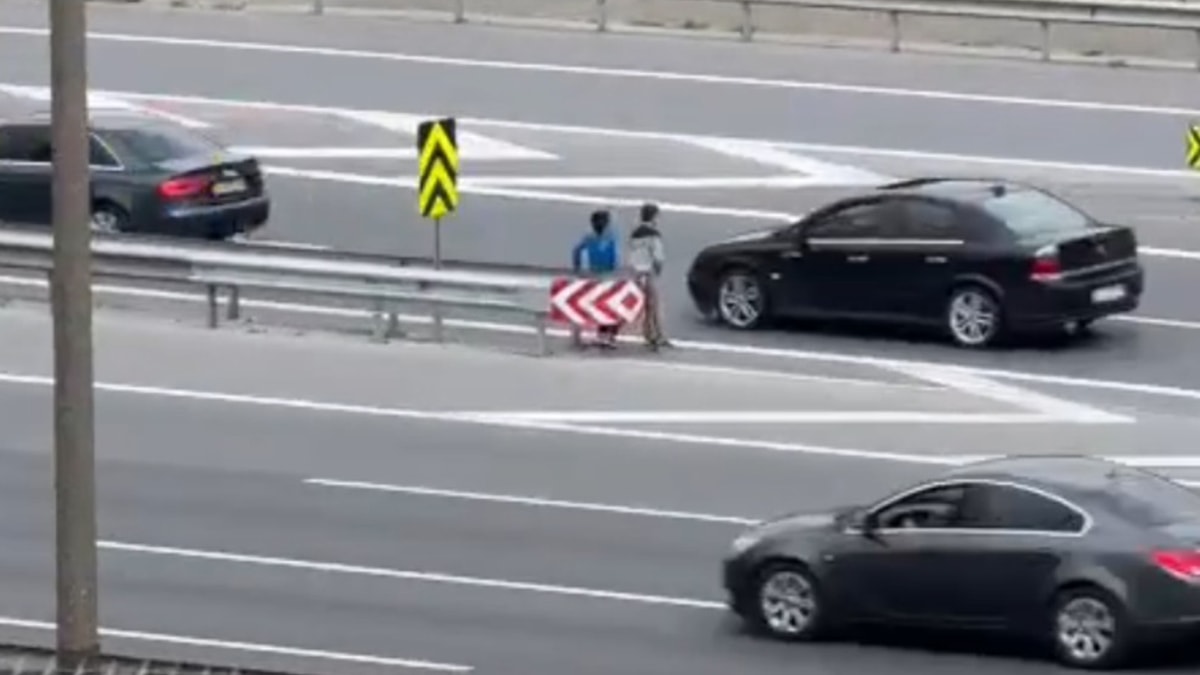 İlk olay, TEM Otoyolu Sultangazi mevkiinde meydana geldi. 50 metre geride üst geçit bulunmasına rağmen iki çocuk, trafikte hızla giden araçlara aldırmadan canlarını tehlikeye attı. Bariyerleri aşan iki çocuk karşıya geçerken, o anlar bir vatandaşın cep telefonu kamerasına yansıdı.