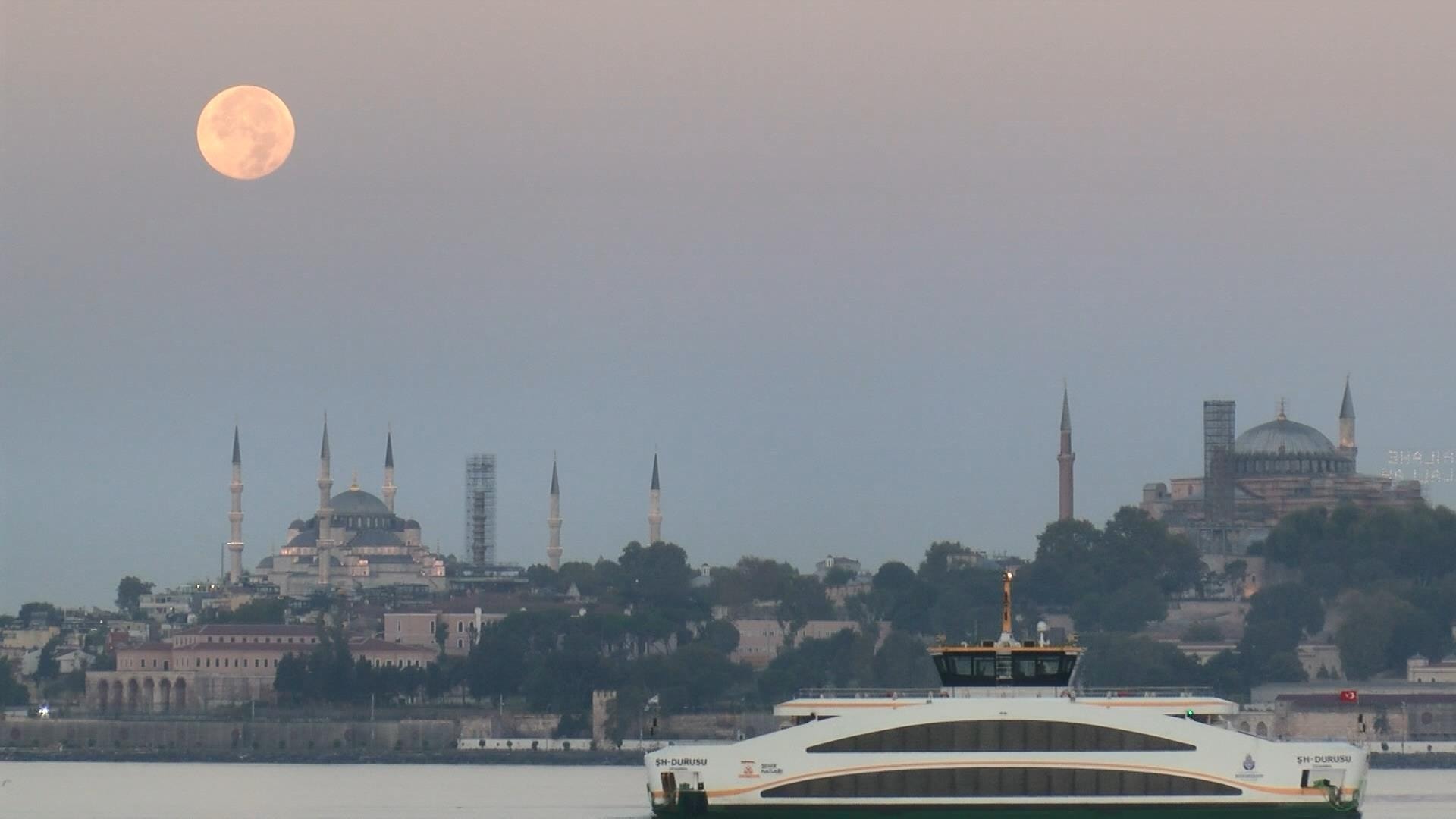 Mavi Ay adıyla da bilinen ayın dolunay hali, normal dolunaydan yüzde 30 daha parlak ve daha büyük görünüyor. İstanbul semalarında akşam saatlerinde beliren Süper Ay manzarası görenleri mest etti. Görsel şölen sabahın ilk ışıklarına kadar sürdü. Süper ay sabah erken saatlerde Üsküdar’da katpostallık manzaralar oluşturdu.