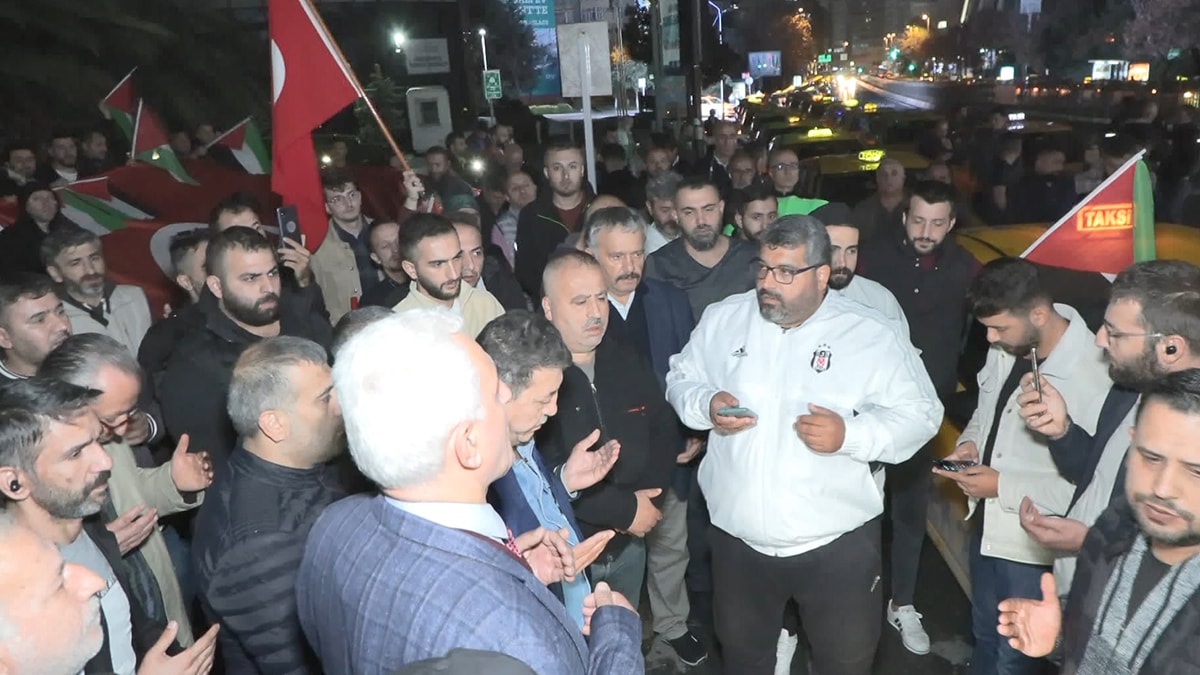 Şişli'de toplanan yüzlerce taksici, Filistin'e destek amacıyla araçlarıyla konvoy oluşturarak İsrail'i protesto etti. Hareket etmeden önce Büyükdere Caddesi'nde toplanan taksiciler, ellerinde Türk ve Filistin bayrakları ile İstiklal Marşı okuyup saygı duruşunda bulunduktan sonra hayatını kaybedenler için dua ettiler.