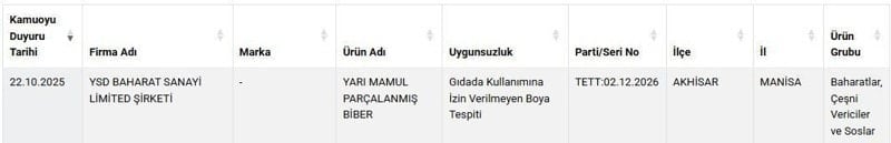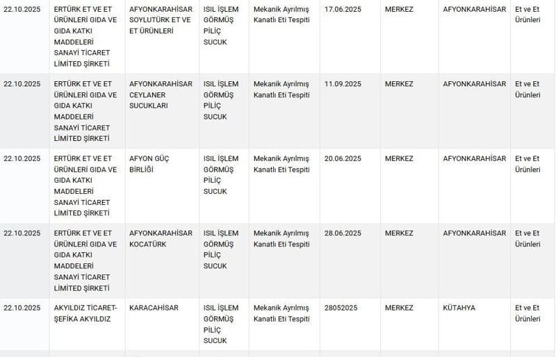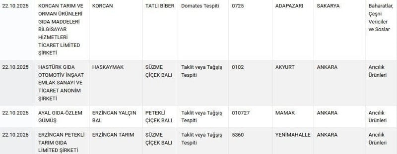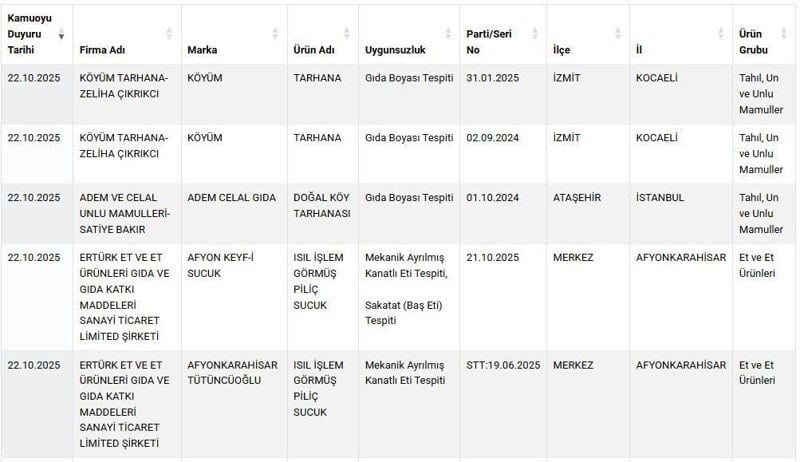 Tarım ve Orman Bakanlığı, vatandaşların sağlıklı gıdaya erişimini korumak için denetimlerini sürdürüyor. Resmi sitede yayınlanan yeni listede, tağşiş yaptığı belirlenen markalar kamuoyuna duyuruldu.