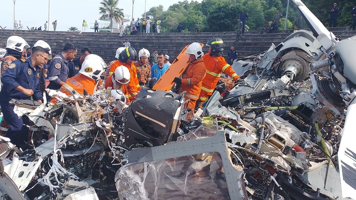 Malezya Deniz Kuvvetleri Komutanlığından yapılan açıklamaya göre, donanmanın 90'ıncı yıl dönümü kutlamaları için Perak eyaletinde geçit töreni provası kapsamında eğitim uçuşu gerçekleştiren 2 helikopter havada çarpıştı.