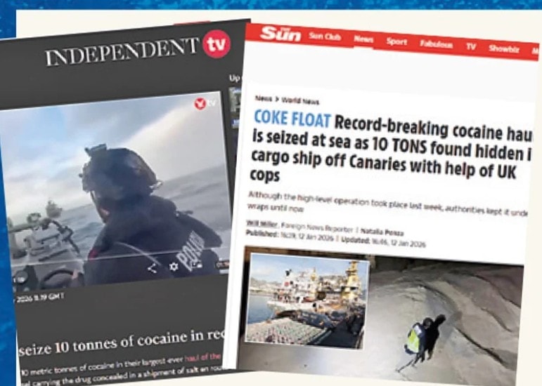 SÖZCÜ'den Ali Gülen ve Veli Toprak'ın haberine göre, İspanyol polisi ve donanmasının Atlantik Okyanusu’nda düzenlediği “Beyaz Gelgit” operasyonu kapsamında, ‘United S.’ adlı gemide yaklaşık 10 ton kokain ele geçirildi.