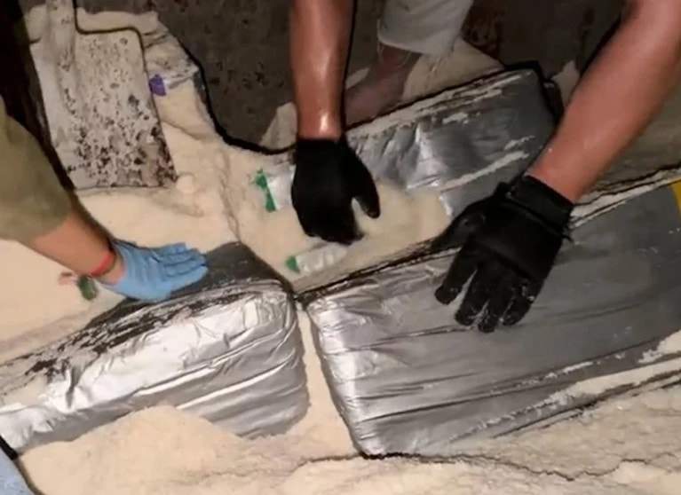 ÇIKARILDI: Kazıldıkça tuzların altından çıkan uyuşturucu paketleri güverteye taşındı.