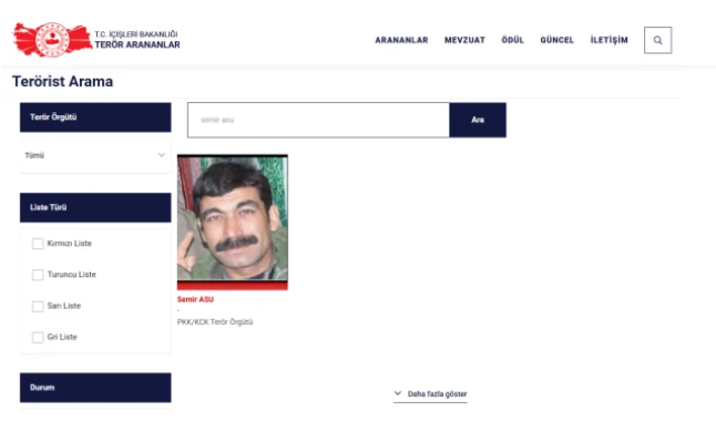 Türkiye Cumhuriyeti İçişleri Bakanlığı tarafından kırmızı kategoride aranan Sipan Hemo, Türkiye İçişleri Bakanlığı'nın kırmızı kategorisinde 20 milyon TL ödülle aranan isimlerden biriydi.
