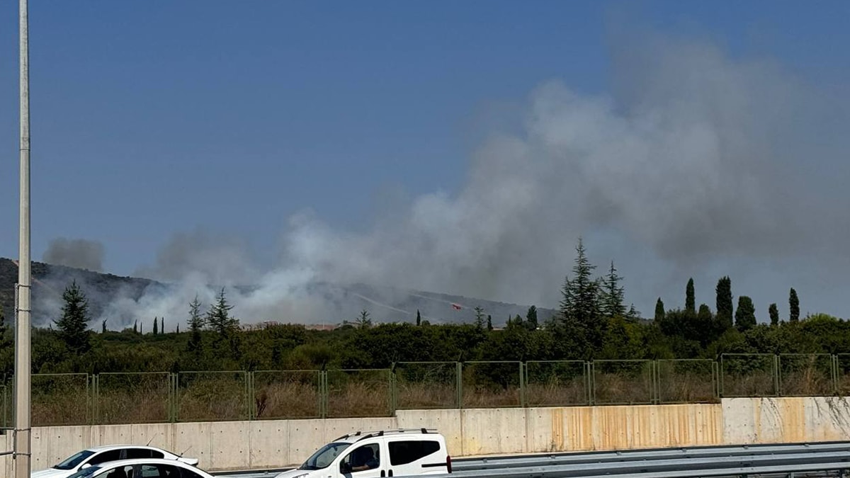 Tuzla Piyade Okulu arazisindeki ağaçlık alanda çıkan yangına itfaiye ekipleri müdahale ediyor.