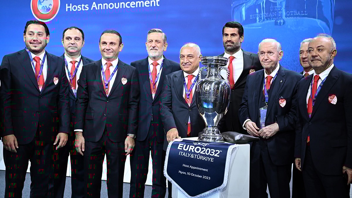 UEFA'nın Nyon'daki merkezinde gerçekleştirilen UEFA Yönetim Kurulu toplantısının ardından gerçekleştirilen törenle EURO 2032'nin Türkiye-İtalya ortaklığına verildiği açıklandı.
