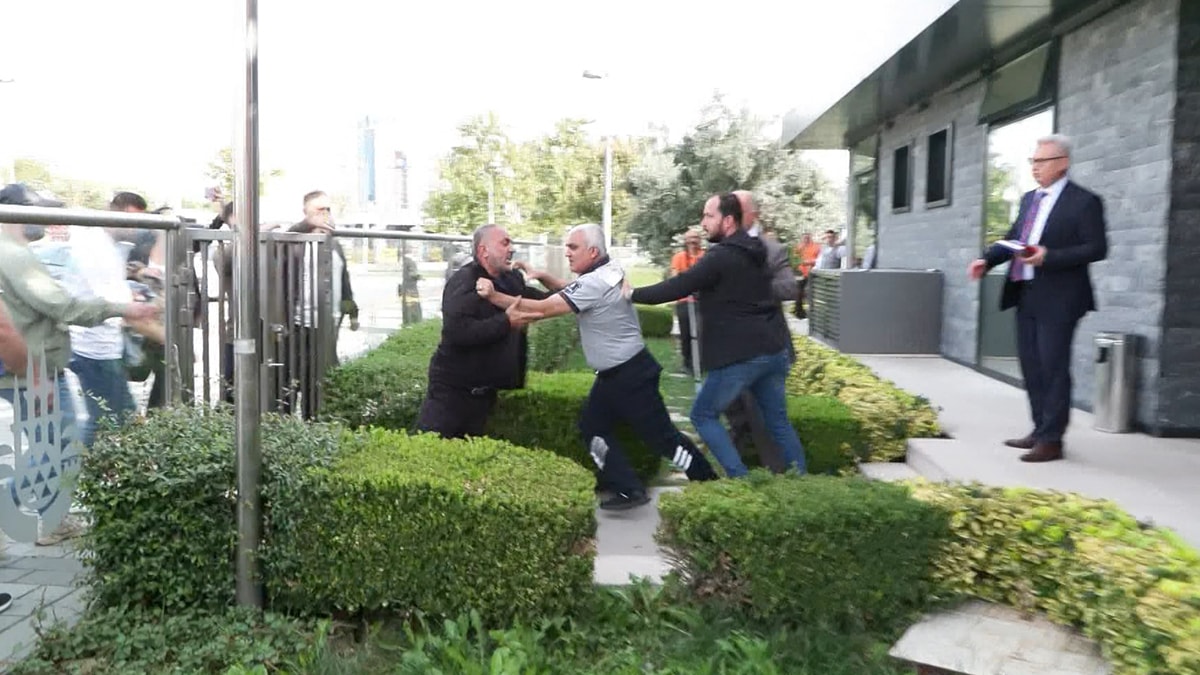 Toplantının son bulmasıyla birlikte istedikleri kararın çıkmadığını öğrenen kalabalık, toplantı salonuna arka kapıdan girmeye çalıştı. Bariyerleri aşarak salona girmeye çalışan bir kişiyi güvenlik görevlileri son anda yakaladı. Güvenlik görevlileri ile arbede yaşayan eylemci kısa süreli baygınlık geçirdi. Dışarıda sloganlar atan grup ellerindeki su şişelerini salona fırlattı. Çevik kuvvet ekiplerinin müdahalesi ile salona girmesi engellenen kalabalık salon önünden ayrıldı.