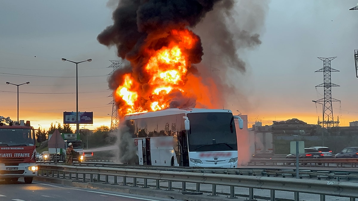 TEM Otoyolu Dudullu mevkisinde seyir halindeki 28 NB 801 plakalı özel şirkete ait yolcu otobüsünün motor kısmında yangın çıktı.