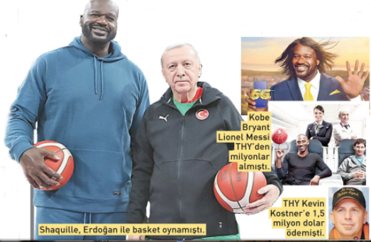 Konuşulan diğer konu ise Shaquille O’Neal’ın reklam filmi için aldığı ücret oldu. Konuyla ilgili resmi bir açıklama yapılmazken, yıldız basketbolcuya en az 2 milyon dolar (90 milyon lira) ödendiği tahmin edildi. Bu paranın yüzde 26,2’si Varlık Fonu’ndan yani halkın cebinden ödendi. THY de reklamlarında oynattığı dünya yıldızlarına milyonlarca dolar ödemişti.