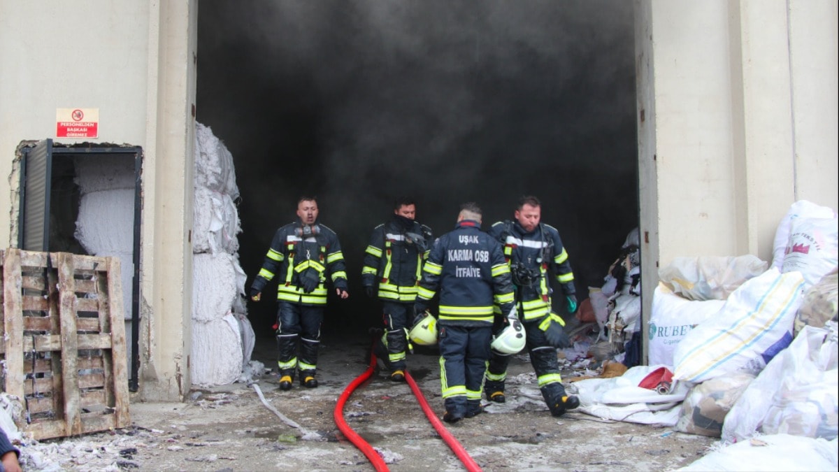 Uşak'ın Deri Karma Organize Sanayi Bölgesi'nde, tekstil atıklarından elyaf üretimi yapan bir fabrikada çıkan yangın büyük hasara yol açtı. Henüz nedeni belirlenemeyen yangın, kısa süre içinde fabrikanın bazı bölümlerini etkisi altına aldı.