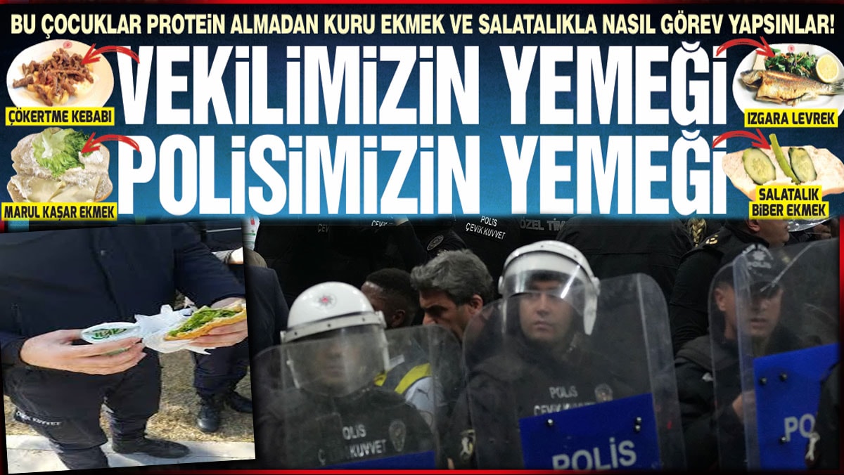 Milletvekilleri komik fiyatlara etle, balıkla beslenirken, polise verilen yemeği görenler, “Bu çocukların bol protein alması lazım. Polisimize yemek diye bunu verenlere yazıklar olsun, hiç mi vicdanınız yok” diye tepki gösterdi.