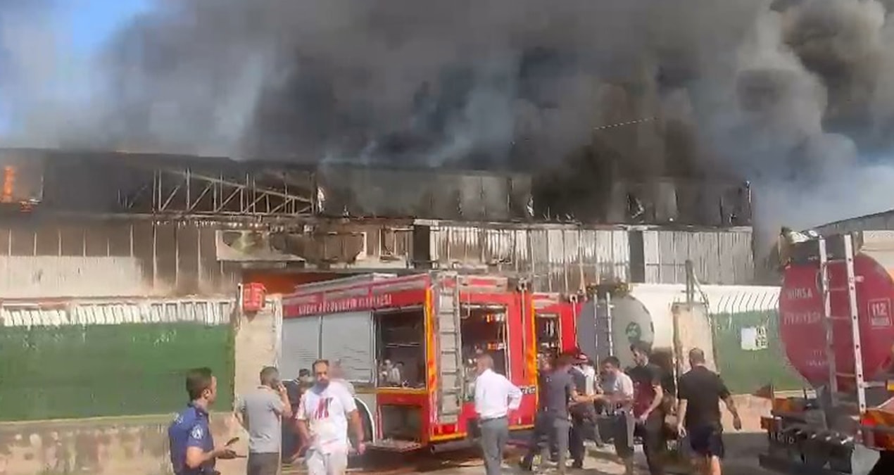 Yıldırım ilçesi Vakıf Mahallesi'ndeki kağıt ve elyaf üretimi yapan yan yana 2 fabrikada, saat 09.00 sıralarında yangın çıktı.