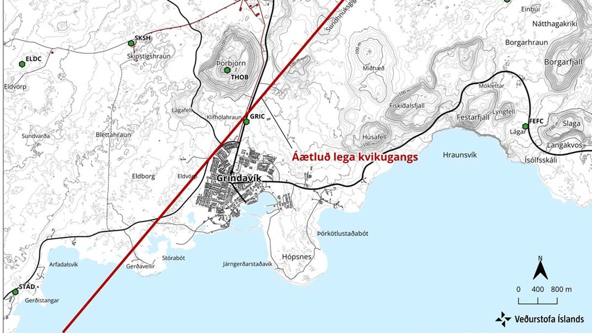 İzlanda Meteoroloji Ofisinden yapılan açıklamada, Elde edilen veriler, magma tünelinin boyutunun önemli olduğunu ve magmanın yüzeye yaklaştığını göstermektedir. Koridor kuzeyde Kalfellsheidi'den başlayıp Grindavik'in batısına ve güneybatı yönünde denize doğru uzanmaktadır.