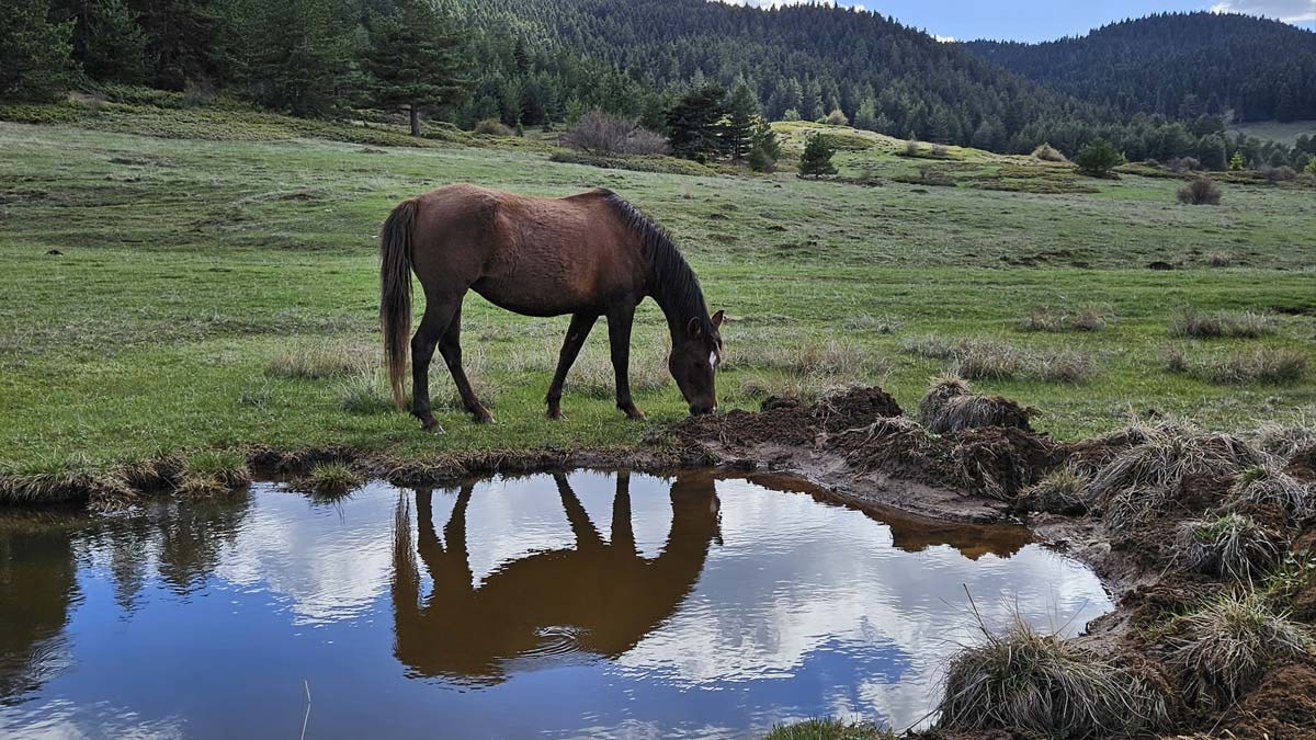 Sarıçam, karaçam, köknar, ardıç ağaçlarının geniş çayırların etrafını sardığı yaylada, yılkı atları özgürce dolaşıyor.