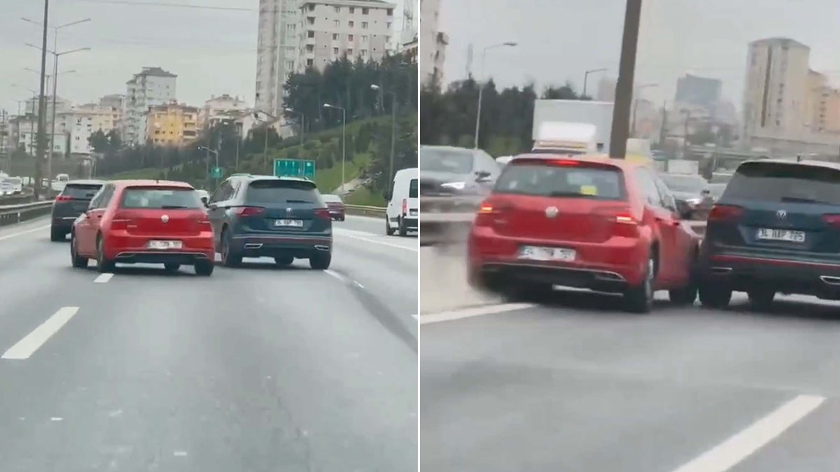 Olay, dün sabah saatlerinde TEM bağlantı yolunda meydana geldi. İddiaya göre; Kozyatağı'ndan Kavacık istikametine seyir halinde olan otomobil sürücüsü ile cip sürücüsü arasında yol verme inatlaşması yaşandı. Otomobil sürücüsü üçüncü şeritten sol şeride geçmek için sollama yaptığı sırada cip otomobili bariyerlere sıkıştırdı. Sürücüler arasındaki tehlikeli inatlaşma ve kaza anı başka bir sürücünün araç içi kamerasına yansıdı.