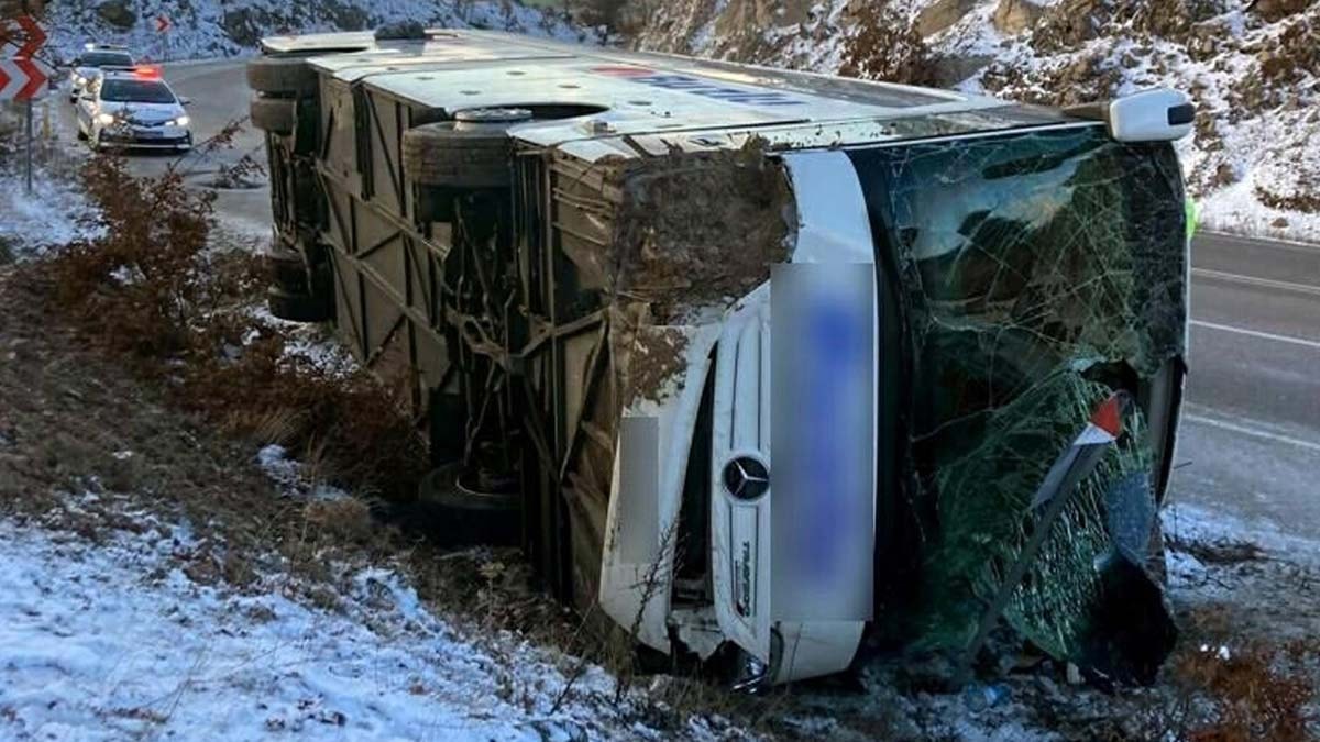 İzmir'den Eskişehir'e giden İ.D.'nin kullandığı 26 AR 017 plakalı yolcu otobüsü, virajda kontrolden çıkarak yol kenarına devrildi. İhbar üzerine olay yerine sağlık, itfaiye ve jandarma ekipleri sevk edildi.
