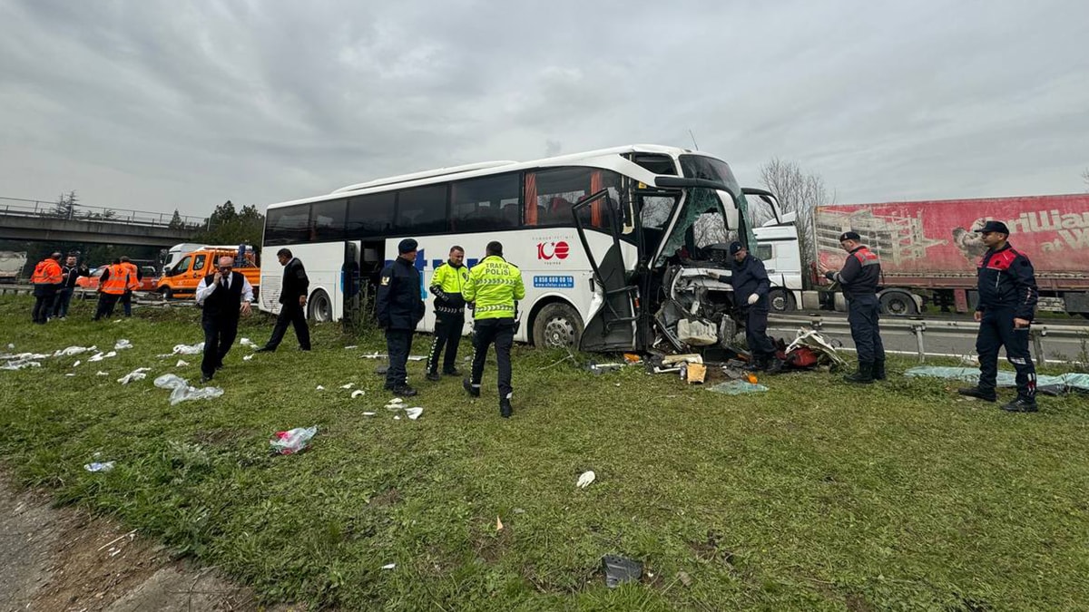 Otobüsü kaldırma işlemlerinin sürdüğü otoyolun Ankara-İstanbul istikametindeki ulaşım kontrollü sağlanıyor.
