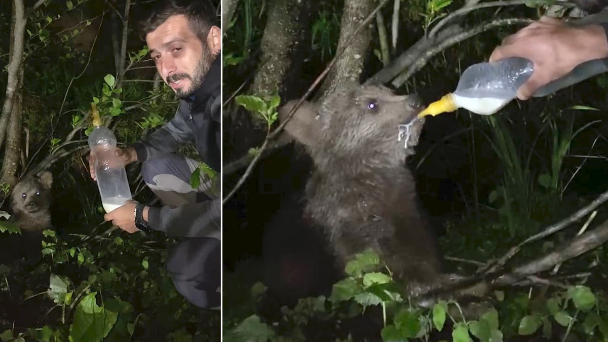 İhbar üzerine bölgeye gelen ekipler de yavru ayıyı güvenli bölgeye alıp, ailesini tespit etmek için çalışma başlattı. Furkan Cihan'ın yavru ayıyı biberonla beslediği anlar ise arkadaşları tarafından cep telefonu kamerasıyla kaydedildi.