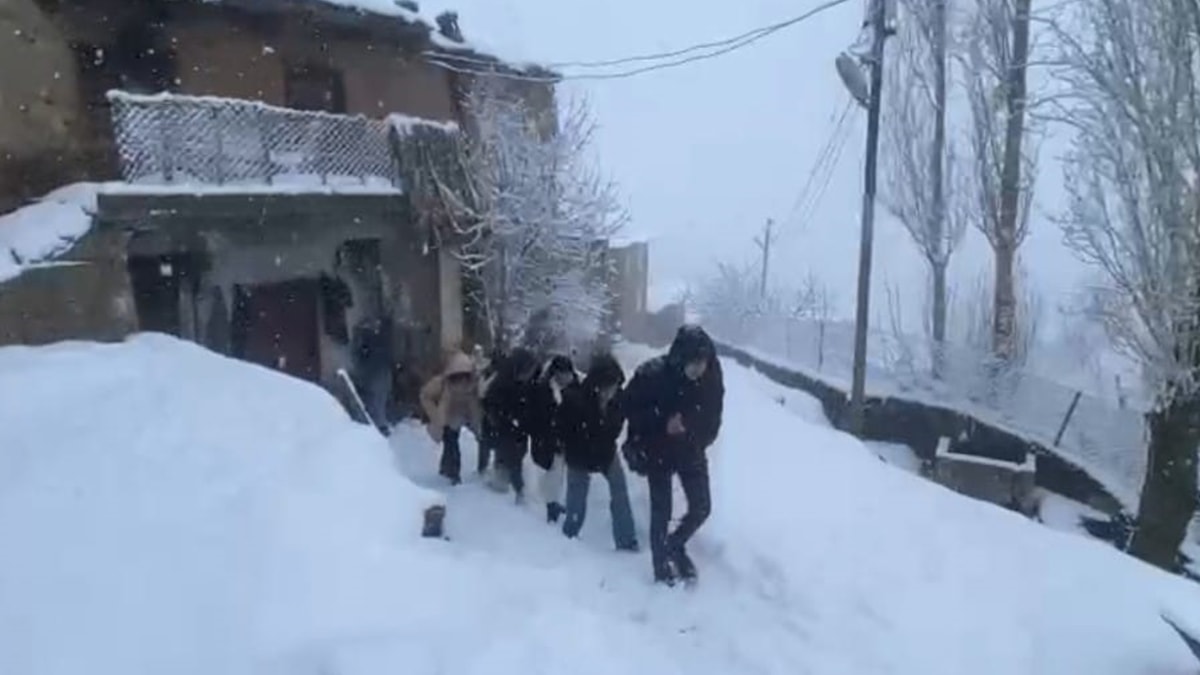 Kar kalınlığının 40 santimetreye ulaştığı Van'ın Bahçesaray ilçesine bağlı Çatbayır Mahallesi'nin yolu da ulaşıma kapandı. Mahalleli küreklerle yolun bir bölümünü açmaya çalışırken, taşımalı eğitim gören öğrenciler de yaklaşık 1 kilometre yürüyerek servislerine ulaştı.